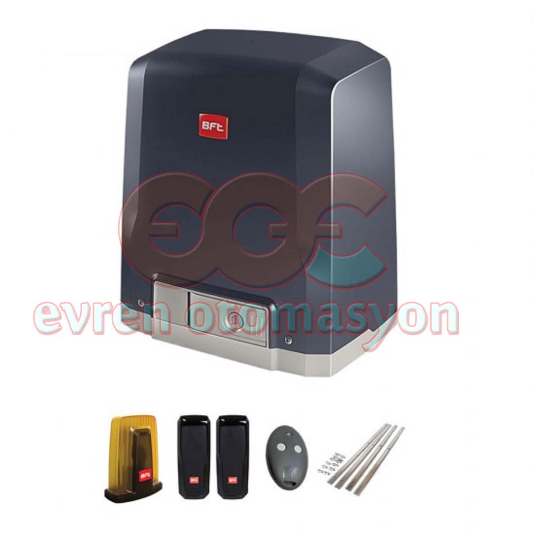 Otomatik kapı sistemlerinde öncü olan BFT kaliteli ürün imalatında kullanım konforunuzu en üst seviyelere taşıyan ürün özellikleriyle bu motor modeli yoğun kullanımlarınıza uygun olarak tasarlanmıştır. Ağırlığı 2000 kilograma kadar ve kapı uzunluğu maksimum 14 metreye kadar olan yana kayar kapı mekanizmalarıdır. Kilitli çalışma sistemi ile termik koruma içeren ürün, basit montaj imkanı ile sorunsuz ve uzun yıllar kullanabileceğiniz bir ürün olarak satışa sunulmaktadır. Mekanizmanın ön kısmına konumlandırılan kontrol ünitesi üzerinden çalışma parametrelerini LCD ekranından otomatik ayarlayarak kolay bir programlama yapabilirsiniz.